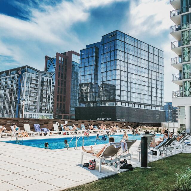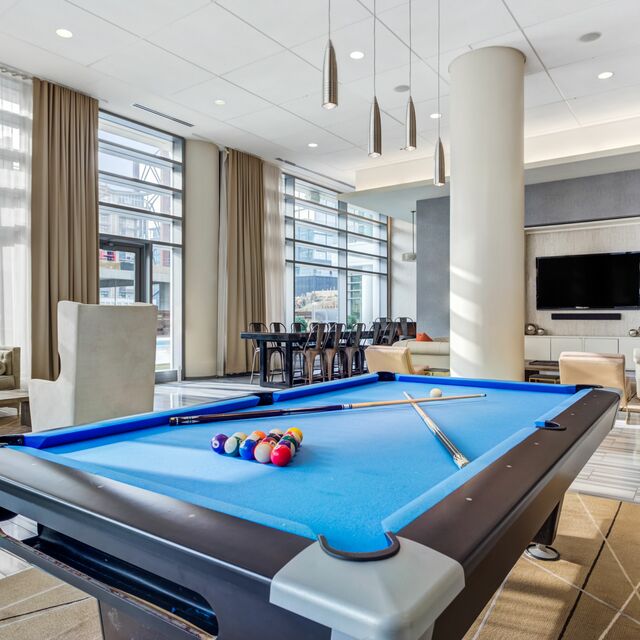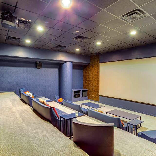 Take relaxation to the next level in the rectangular pool, which has cabana seating. If you are a fitness buff, you can lift weights or get a spin session using the state-of-the-art equipment in the gym. When you are ready to relax after a long day, head out to the terrace lounge with a firepit or rejuvenate your mind and body in the steam room. Spend your weekend movie nights in the high-definition theater room. Even your fur babies can have fun with pet amenities such as a bark park and a grooming station. With your free time, you can shoot hoops with friends in the indoor basketball court. Residents can charge electric vehicles using the GE charging stations. The business center and boardroom offer ideal spots where you can work from home or hold meetings online. Other amenities such as on-site storage, parking spaces, and a 24-hour concierge provide even more convenience.